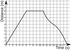 En el estudio de la cinemática unidimensional, los gráficos de posición frente al tiempo (también llamados gráficos de distancia-tiempo, o gráficos d-t) proporcionan un medio útil para describir el movimiento. Las características específicas del movimiento de los objetos se muestran mediante la forma y la pendiente de las líneas.[1] En la figura adjunta, el objeto observado se aleja del origen a una velocidad uniforme de 1.66 m/s durante seis segundos, se detiene durante cinco segundos, y luego regresa al origen durante un período de siete segundos a una velocidad no constante.