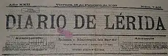 - ↑ a b Ortiz y Estrada, Luis (19 de junio de 1931). «La desaparición de "El Diario de Lérida"». El Siglo Futuro: 4.
