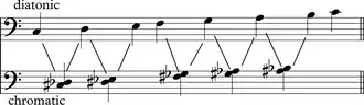 Diatónico (griego: διατονική) y cromático (χροματικί) son términos de la teoría musical a menudo utilizados para caracterizar la escala musical, y es también aplicado a instrumentos musicales, intervalos, acordes, notas, estilos musicales, y clases de armonía. Todos estos conceptos fueron introducidos desde la antigua Grecia, y son a menudo utilizados como par, especialmente aplicado para contrastar características de la música de práctica común.