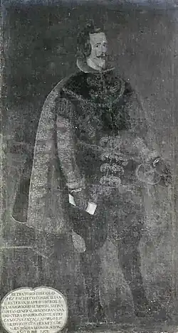 ![]() Retrato de Diego López Pacheco y Portocarrero, estaba ubicado en Ermita de la Virgen de Consolación de Torredonjimeno y fue destruido durante la guerra civil española (1936-1939). Es una réplica del retrato de Felipe IV realizado por Velázquez que se encuentra en la National Gallery y que fue realizado hacia 1635. | ||