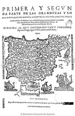 - Primera y Segunda parte de las grandezas y cosas notables de España. Compuesta primeramente por el Maestro Pedro de Medina vezino de Sevilla y agora nuevamente corregida y muy ampliada por Diego Pérez de Mesa, catedrático de Matemáticas de la Universidad de Alcalá, Alcalá de Henares, 1595. disponible en Google books