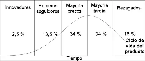 - La teoría de difusión de las innovaciones de Everett M. Rogers - para una categoría de producto dada, hay cinco categorías de compradores clasificados por su rapidez en adquirirlo cuando sale al mercado.