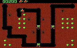 El juego está estructurado en niveles o pantallas. Para avanzar al siguiente nivel, el usuario ha de conseguir todas las esmeraldas o aniquilar a todos los monstruos del nivel.