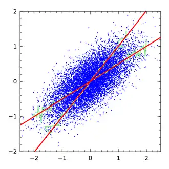 - ↑ Riggs, D. S.; Guarnieri, J. A.; et al. (1978). «Fitting straight lines when both variables are subject to error». Life Sciences: 1305-60. PMID 661506. doi:10.1016/0024-3205(78)90098-x.