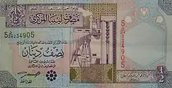 La última serie de billetes emitidos por el Banco Central de Libia (مصرف ليبيا المركزي Masraf Libya al-Markazi) fue distribuida en marzo de 2013 tras la caída del gobierno de Muamar el-Gadafi. Estos han sido totalmente rediseñados para todos sus valores (1, 5, 10, 20 y 50 dinares) de tal forma que se elimina cualquier alusión a su persona.<ref>Libya new 20-dinar note confirmed