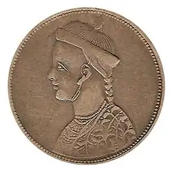 - ↑ Davies, Major H.R.: Yünnan. The Link between India and the Yangtse. Cambridge University Press, Cambridge, 1909, p. 279 and Clements, A.J.: “The Coins of West China, a Manifold and Varied Currency.” The North China Herald, vol. 132, no. 2718, Shanghai, 13 Sept. 1919.