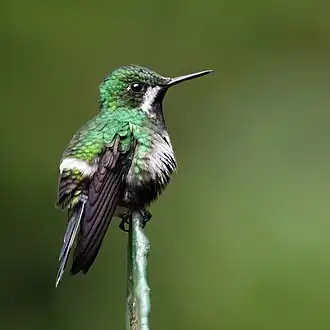 - ↑ a b c d Schulenberg, T.S. (2020). «Green Thorntail (Discosura conversii)». En Schulenberg, T.S., ed. Birds of the World (en inglés) (Ithaca, NY: Cornell Lab of Ornithology). doi:10.2173/bow.gretho1.01. Consultado el 26 de junio de 2024. (requiere suscripción).