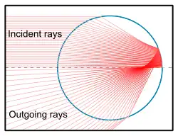 Se pueden aplicar técnicas de trazado de rayos para estudiar la dispersión de la luz por partículas esféricas y no esféricas bajo la condición de que el tamaño de una partícula sea mucho más grande que la longitud de onda de la luz. La luz se puede considerar como una colección de rayos separados con un ancho de rayos mucho mayor que la longitud de onda pero más pequeño que una partícula. Los rayos que golpean la partícula sufren reflexión, refracción y difracción. Estos rayos salen en varias direcciones con diferentes amplitudes y fases. Dichas técnicas de trazado de rayos se utilizan para describir fenómenos ópticos como el arco iris de halo en cristales de hielo hexagonales para partículas grandes. Hay códigos de trazado de rayos en la óptica atmosférica disponibles.