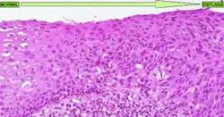 El término displasia (del griego antiguo δυσ-, "dys", dificultad, y el sufijo -plasia derivado del verbo πλάσσω, "plásso", formar)[1] hace referencia a una anormalidad en el aspecto de las células debido a alteraciones en el proceso de maduración de las mismas. Es una lesión celular caracterizada por una modificación irreversible del ADN que causa la alteración de la morfología o de la función celular. Si se produce un incremento en el número de células, se convierte en una hiperplasia. La displasia también puede acabar provocando una neoplasia. Las células displásicas sufren una proliferación y alteraciones atípicas que afectan su tamaño, forma y organización. Esto puede ser indicativo de que se encuentran en una fase de evolución temprana hacia la transformación en una neoplasia. Por lo tanto, la displasia es en ocasiones un cambio preneoplásico o precanceroso.