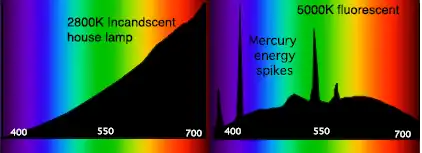 La composición espectral de la fuente puede ser a su vez un representante de la temperatura del color, afectando así a la apariencia del color según la temperatura de la fuente.[15]