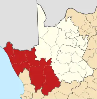 ![]() Ubicación del distrito de Namakwa en la Provincia Septentrional del Cabo | ||