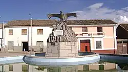 Vista de la plaza Mayor de Huamanguilla, la capital distrital, con el Palacio Municipal al fondo.