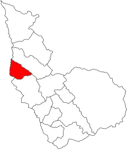 Abarca una superficie de 124,63 km². Está conformado por doce anexos y dos caseríos. Este distrito cuenta con los servicios básicos de luz, agua y desagüe; así como también el servicio de internet.