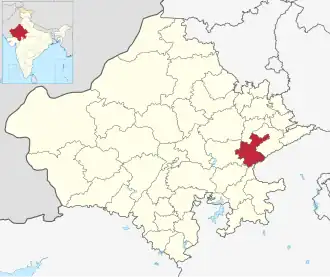 ![]() Ubicación del distrito de Sawai Madhopur en Rajastán. | ||