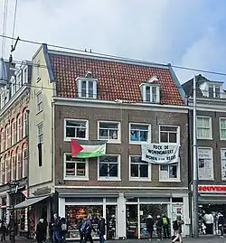 La guerra de Gaza comenzó el 7 de octubre de 2023 después del ataque liderado por Hamás contra Israel ese día, que resultó en la muerte de 1139 personas y la toma de otras 251 como rehenes en la Franja de Gaza.[11] Israel comenzó a bombardear la Franja de Gaza también el mismo día y, en noviembre de 2024, había matado a más de 43 000 palestinos,[12][13] más del 70 % de las víctimas mortales eran mujeres y niños, según datos de la ONU.[14] Israel extendió la guerra con su invasión del Líbano el 1 de octubre de 2024, que mató a más de 3000 libaneses y provocó el desplazamiento de más de 1,2 millones de personas en todo el país y Siria.[15] En los Países Bajos se han producido numerosas protestas relacionadas con la guerra.[16]