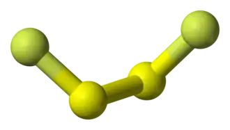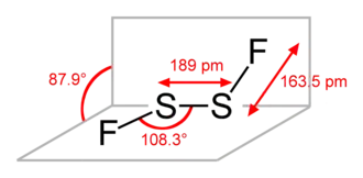 El difluoruro de disulfuro es un haluro de azufre , con la fórmula química S2F2. Es un gas incoloro que reacciona con el agua. Existe como dos isómeros: simétrico FSSF y asimétrico S = SF2.