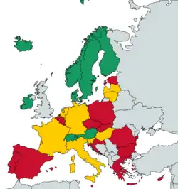 - ↑ El acervo jurídico comunitario ha sido considerado pertinente para el EEE por la Comisión de la UE, lo que hace que Islandia, Liechtenstein y Noruega lo estudien para incorporarlo al Acuerdo sobre el EEE. Sin embargo, la base jurídica se basa en el artículo 21 del Tratado de Funcionamiento de la Unión Europea, artículo que no se refleja en el Acuerdo sobre el EEE.