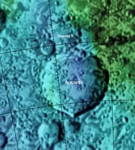 Doerfel es un cráter de impacto que se encuentra en la proximidad del polo sur, justo en la cara oculta de la Luna, aproximadamente a medio camino entre el gran cráter Hausen al este-noreste y el aún más grande cráter Zeeman al suroeste.