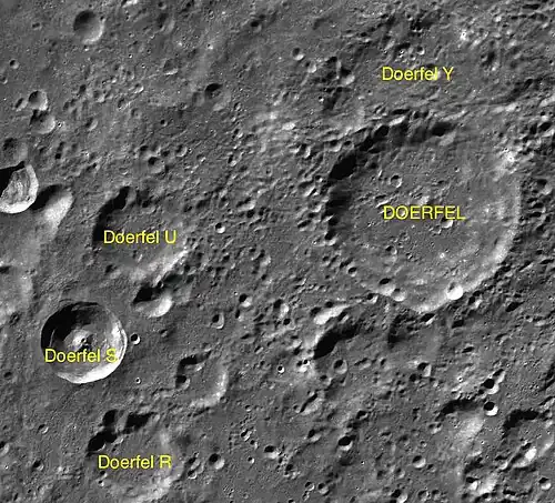 Por convención estos elementos son identificados en los mapas lunares poniendo la letra en el lado del punto medio del cráter que está más cerca de Doerfel.