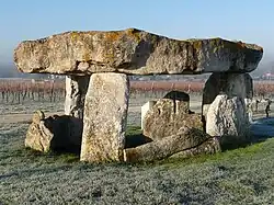 Las piedras y tierra, túmulo, que lo recubría ha desaparecido; es un dolmen cuya mesa horizontal, en asperón, mide 7 metros de longitud, 4,70 metros de anchura, 1 metro de espesor y pesa aproximadamente 40 toneladas. Posee una altura imponente e inhabitual en la región, ya que la mesa es sostenida por tres pilares de 2,20 m de altura.