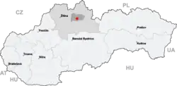 Se encuentra ubicada en el centro de la región, cerca del curso alto del río Váh (cuenca hidrográfica del Danubio) y de la frontera con la República Checa y Polonia.[2]