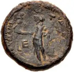 ![]() Moneda que representa a Drusilla (izquierda) sostenida por su madre Milonia (derecha) | ||