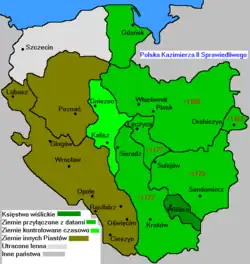 - La Pequeña Polonia, excepto el ducado oriental de Sandomierz asignado al hijo menor de Boleslao III, Enrique;