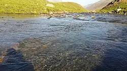El agua del lago es de color azul verdoso y muy fría, a una altitud de 3800 metros (12 500 pies). Las montañas circundantes, con zonas de nieve en los umbrosos valles, promedian alrededor de 4800 metros (15 700 pies) de altitud. Su hábitat natural se encuentra en la ecorregión de arbustos y prados alpinos del Himalaya occidental.