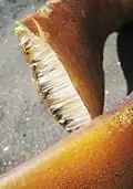 Por otra parte, también recibe nombres de origen mapuche: "coyofe" es una adaptación de la voz original kollof, que designa sus filoides. En la zona sur de Chile los cauloides son llamados "ulte" (o "huilte"),[1] en los alrededores de Valdivia reciben el nombre de "lunfo" (del término lüngfo o lenfü[1]) y en Chiloé llaman "lembo" o "raguay" a esta estructura junto con el disco basal, nombre que se le aplicaba humorísticamente al pene por su parecido en forma y constitución. Ya vieja, esta alga es llamada müngo en mapudungún.[1]