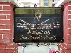 - Hugli (37 km o 23 millas) para el tráfico de pasajeros el 15 de agosto de 1854. Se recibieron más de 3.000 solicitudes de personas que querían viajar en el primer tren de la India oriental. El primer tren funcionó a plena capacidad. El tren dejó la estación de Howrah a las 8:30 a. m. y llegó a Hooghly en 91 minutos. Tenía tres vagones de primera clase y dos de segunda. También tenía tres camiones para pasajeros de tercera clase y una furgoneta para el guardia. Todos ellos fueron construidos en la India, porque el barco que transportaba los vagones originales desde Inglaterra se había topado desafortunadamente con un desastre natural en alta mar y, por consiguiente, se hundió. Sin embargo, la locomotora fue importada, aunque no sin sus propias dificultades. El barco que traía la locomotora había navegado inicialmente a Australia, debido a un error de navegación,y tuvo que ser desviado de vuelta a la India.