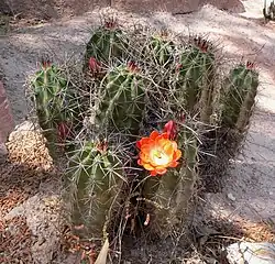 Forma pequeños grupos de plantas generalmente ramificada, de pocos a muchas y pueden alcanzar un diámetro de hasta un metro. El cuerpo de la planta es verde claro, de forma ovoide a cilíndrica, y alcanza una estatura de hasta 40 centímetros de diámetro, y entre 2,5 a 5 centímetros. Las 5 a 12 costillas a menudo forman verrugas. Las espinas son de color amarillo negruzco con hasta 4 espinas centrales, que pueden estar ausentes, tener una sección transversal cuadrada y 7 cm de largo. La del medio es a menudo aplanada. Los 5 a 20 espinas radiales son redondas en la base. Las flores son amplias, de color naranja-rojo en forma de jarrón y aparecen debajo del ápice del brote y a veces son dioicas. Miden de 3 a 10 cm de largo y tienen de 2,5 hasta 8 cm de diámetro. Los frutos son esféricos de color rojo y tienen espinas inclinadas.