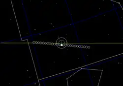 ![]() Trayectoria de la Luna a través de la sombra de la Tierra en la constelación de Aries. | |