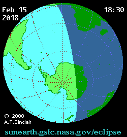 - ↑ F. Espenak. «Partial Solar Eclipse of 2018 February 15». NASA Eclipse Website. Consultado el 16 de enero de 2018.