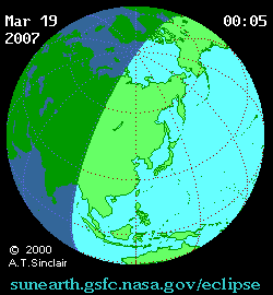 El 19 de marzo de 2007 se produjo un eclipse solar parcial que fue visible en Asia, desde la India a Alaska.