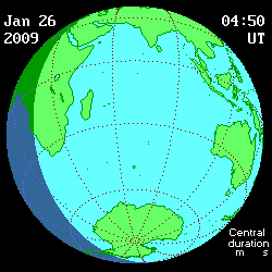El 26 de enero de 2009 tuvo lugar un eclipse de Sol anular sobre Sudáfrica, el océano Índico, Indonesia y Australia, que tuvo una duración de 7:54 minutos. En un eclipse anular la Luna no oculta por completo al Sol, dejando un anillo luminoso alrededor de ésta.