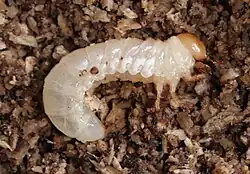 La congelación también puede iniciarse por el contacto externo con el hielo (congelación inoculativa).[16] Por lo tanto, algunos insectos evitan la congelación seleccionando un lugar de hibernación seco en el que no pueda producirse la nucleación de hielo de una fuente externa.[17] Los insectos también pueden tener una barrera física, como una cutícula recubierta de cera, que proporciona protección contra el hielo externo a través de la misma.[18] La etapa de desarrollo en la que un insecto pasa el invierno varía según la especie, pero puede ocurrir en cualquier punto del ciclo de vida (es decir, huevo, pupa, larva y adulto). Algunas especies de Collembola toleran el frío extremo desprendiéndose del intestino medio durante la muda.[19]