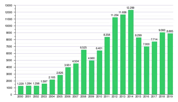 - ↑ Trade Map - List of exporters for the selected product in 2018 (All products)
