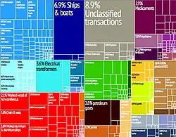 | Productos exportados | equipos de transporte, maquinaria, textiles, productos químicos, productos alimenticios, combustibles | |