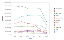 | Países Bajos | 1 548 855 814 | 1 591 307 556 | 1 477 402 353 | 1 481 322 479 | 1 468 743 568 | 1 229 574 670 |
