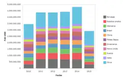 | País importador[23] | 2010 | 2011 | 2012 | 2013 | 2014 | 2015 |