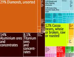 | Productos exportados | diamantes, rutilo, cacao, café, pescado | |