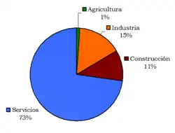 El sector que mayor número de puestos de trabajo genera es el sector servicios; que da trabajo a 104.168 personas, lo que representa el 72,7% de los trabajadores afiliados a la Seguridad Social.[3]