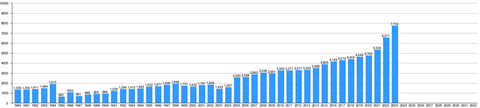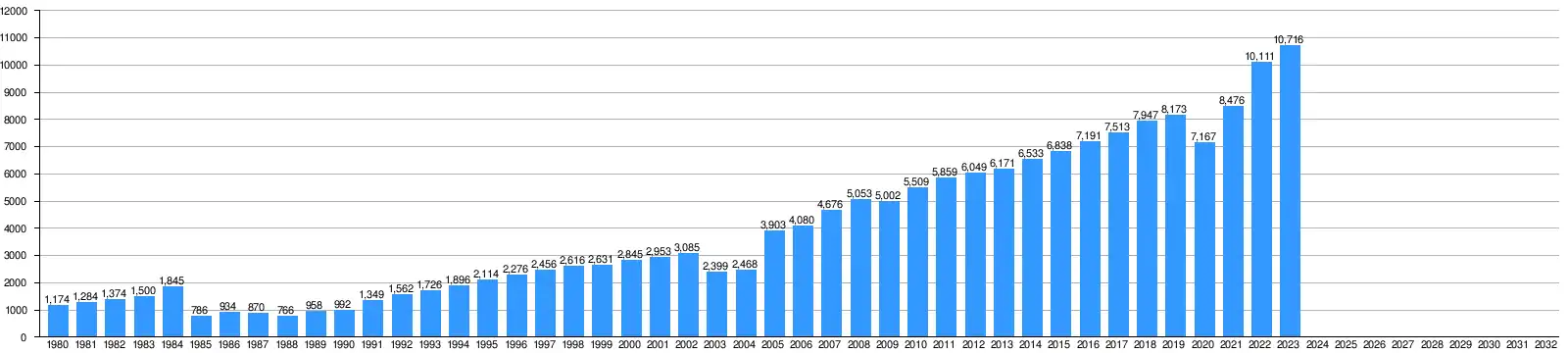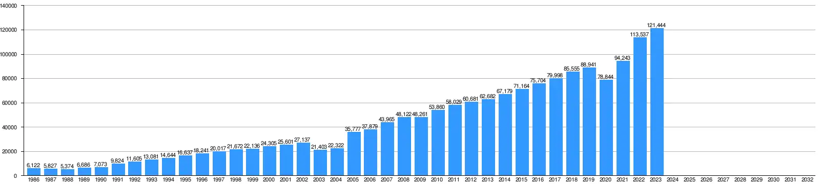 | 11º | 83 382 | 45 599 | 13 693 | 8 782 | + 849 % | ||||||||
