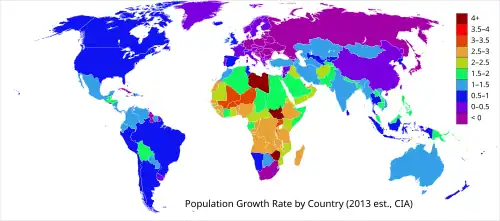 Tasa de crecimiento de la población humana en porcentaje, con las variables de nacimientos, muertes, inmigración y emigración - 2013