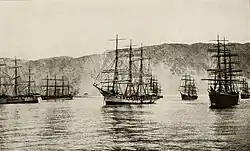 Tras una larga fase de estabilidad política, en la década de los 1870 Chile exportaba principalmente cobre, plata y trigo, pero también lana[6]: Vol.7, pág.11-12 y existía una incipiente producción industrial.[6]: Vol.6, pág.252 Con la ventaja de ser el primer puerto de atraque en el Pacífico de los barcos provenientes de Europa, en el puerto se desarrolló una gran dinámica comercial que tenía vínculos con Perú, Bolivia, Estados Unidos y Australia para el intercambio de mercaderías, noticias y capitales. Desde Valparaíso se abastecía las regiones salitreras de Tarapacá y Antofagasta, enviaba trigo a Australia y California, estaba radicada la CSFA, se transaba el salitre que partía a Europa y estaba comunicado por telégrafo con Buenos Aires, Londres, París y Nueva York.