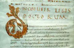 Algunas características propias de las instituciones germanas se conservaron: una de ellas el predominio del derecho consuetudinario sobre el derecho escrito propio del Derecho romano. No obstante los reinos germánicos realizaron algunas codificaciones legislativas, con mayor o menor influencia del derecho romano o de las tradiciones germánicas, redactadas en latín a partir del siglo V (leyes teodoricianas, edicto de Teodorico, Código de Eurico, Breviario de Alarico). El primer código escrito en lengua germánica fue el del rey Ethelberto de Kent, el primero de los anglosajones en convertirse al cristianismo (comienzos del siglo VI). El visigótico Liber Iudicorum (Recesvinto, 654) y la franca Ley Sálica (Clodoveo, 507-511) mantuvieron una vigencia muy prolongada por su consideración como fuentes del derecho en las monarquías medievales y del Antiguo Régimen.[18]
