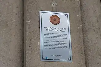 - ↑ a b «Edificio de los Servicios Públicos de Talca». Portal de Patrimonio (en inglés). Consultado el 29 de mayo de 2021.