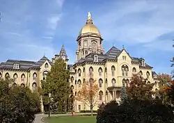 El Edificio de Administración Principal de la Universidad de Notre Dame[1][2][3] (conocido como el Edificio Principal o la "Cúpula Dorada") alberga varias oficinas administrativas, incluida la Oficina del Presidente. En la parte superior del edificio se encuentra el Golden Dome, el hito más reconocible de la Universidad. Tres edificios fueron construidos en el sitio; el primero fue construido en 1843 y reemplazado por uno más grande en 1865, que se quemó en 1879, después de lo cual se erigió el tercer y actual edificio. El edificio alberga las oficinas administrativas de la Universidad, así como aulas, colecciones de arte y espacios de exposición. El edificio figura en el Registro Nacional de Lugares Históricos.