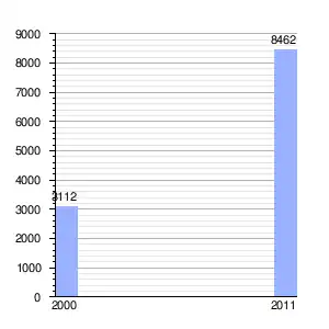 | Gráfica de evolución demográfica de Edinburgh 500 entre 2000 y 2011 |