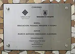 - ↑ a b Corporación Ngehuin. «Diccionario Arte Público - Mural "Educación: pasado, presente y futuro". Exterior. Concepción». Archivado desde el original el 5 de marzo de 2016. Consultado el 20 de agosto de 2012.